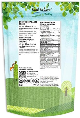 Certified Organic Garbanzo Beans By Food To Live Dried Chickpeas Non Gmo Kosher Raw Sproutable Bulk 3 Pounds Amazon Ca Grocery Gourmet Food